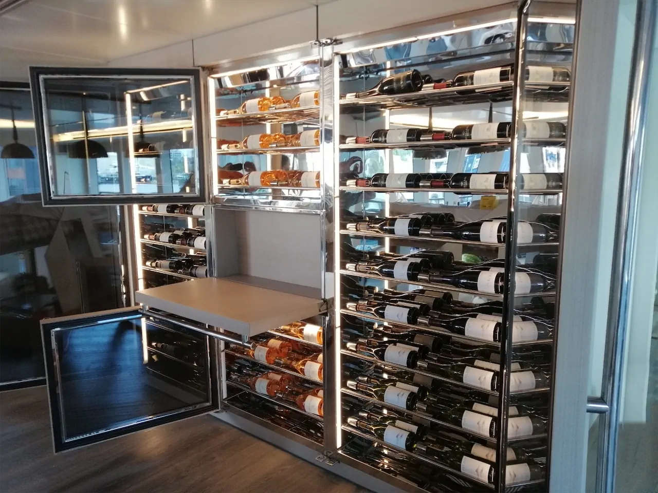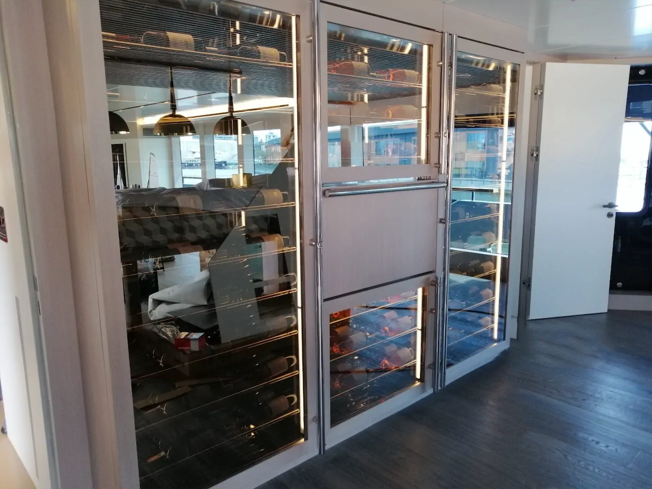 Numarine için özel olarak tasarlanan ve üretilen Soğutmalı Şarap Dolabı, yat içerisine konumlandırılmıştır. Çizimleri, kullanılan materyalleri ve görsel estetiği ile eksiksiz bir şarap dolabı olarak göze çarpıyor.
